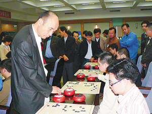作为体育记者,本人第一次来到玉柴。才发现玉柴职工里居然有几百人属于“手谈”爱好者,他们拥有自己的群体协会——玉柴棋牌协会。玉柴集司董事局主席晏平竟然一家人都是围棋爱好者,在晏平办公室,最引人注目的是桌上的那副围棋和棋盘。此外,他还在网上下棋,纪录已高达一万多盘。也就是说,作为一个企业高层管理者,如果每天百忙中抽出时间下3盘棋,也要10年才能完成这一纪录。
