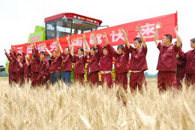 “我宣布:2009年全国小麦跨区机收开机启动!”5月26日上午,2009年全国小麦跨区机收启动仪式在河南省驻马店市隆重举行,农业部部长孙政才一声宣布,上百辆联合收割机轰鸣起动,整齐驶向滚滚黄金麦浪,顿时田野间呈现一片繁忙景象,全国小麦主产区夏收工作全面展开。玉柴机器股份有限公司客服中心、玉柴河南办事处、驻马店市玉柴服务站30多人参加了启动仪式,数十台配装了玉柴农用发动机的联合收割机闪耀其中。