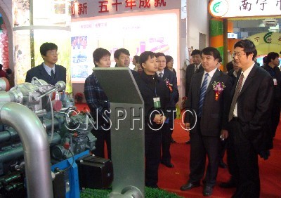 >> 图片说明: 1月11日,第18届广西科技活动周在南宁开幕。本届科技周以“创新跨越、科技发展”为主题,为期5天。共围绕广西科技活动周开幕式暨科技表彰奖励大会、广西科技活动周新技术新产品交流交易会、科技论坛、开展科技专题活动4大类35项活动内容展开。图为中共广西区委常委宣传部长沈北海(右一)参观广西玉柴机器集团欧五产品。 中国新闻图片网 杨志雄