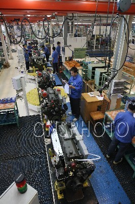 >> 图片说明: 11月2日,广西玉柴机器集团重机装试车间组装线上,源源不断的新发动机下线。2008年预计产量为50万台的玉柴集团是广西玉林的一张名片,也是中国最大的内燃机生产基地,在新的经济发展环境下,它打出从“中国制造”到“中国创造”的口号,在产品的动力性、节能性、环保性取得丰硕成果,在2008北京奥运会专用车辆和北京近年更换的公交车竞标中,分别获得2000辆和1000多辆的份额。 中国新闻图片网 王丽南