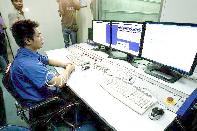 >> 图片说明: 11月2日,广西玉柴机器集团工程研究院技术人员做重型发动机动态试验。玉柴集团是广西玉林的一张名片,也是中国大马力柴油机的“大哥”,在新的经济发展环境下,它打出从“中国制造”到“中国创造”的口号,围绕产品的动力性、节能性、环保性取得丰硕成果,在北京2008奥运会专用车辆和北京近年更换的公交车竞标中,分别获得2000辆和1000多辆的份额。 中国新闻图片网 王丽南