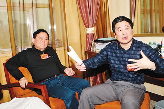 3月12日,王晓华(左)、晏平(右)两位代表坐在一起,聊起“大部制”改革对装备制造业的影响。