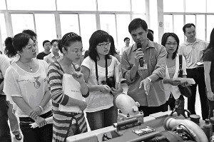在玉柴重机装试车间,在技术中心实验室,记者们边走边看,边听边记。李天生介绍说,“人才小高地”是广西为了吸引人才,培养人才,而采取的集中各方力量,利用特殊政策和措施,依托重点产业、重点项目,精心打造的吸引、聚集和培养高层次人才,有效发挥人才作用的“特区”。近几年来,为了给人才提供广阔的创业“特区”,玉柴以项目为依托,成立了电控技术等前沿项目组,投资1亿多元建设国家级技术中心,安装了达到国际先进水平的技术测试系统,使大批尖端人才得以潜心进行技术开发。