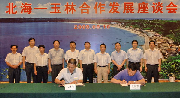 在北海—玉林合作发展座谈会上,玉林和北海两市分别汇报了前段时间推进铁山港(龙潭)组团建设的各项工作,并签署了《铁山港(龙潭)组团合作规划建设框架协议》。