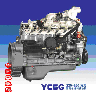 YC6G系列车用发动机全套引进了美国著名公司7.8L发动机设计、工艺技术及全套加工、装配与检测设备。该产品经过玉柴与德国FEV公司技术合作,进行二次开发,运用了11项专利技术。国三机型采用美国DELPHI电控单体泵,自动修正大气环境,实现从-40℃~50℃环境下顺利工作,同时适应从海平面到4000米的不同海拔高度使用,具有自动故障诊断、智能动力、怠速加载控制等优点。