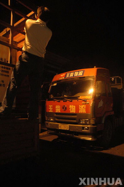 6月1日晚22时许,装卸工人正在把发电机组装上运输卡车。 6月2日上午,玉柴集团将把50台发电机组和5台挖掘机运往四川灾区,工人们于1日晚连夜将设备装上运输卡车。为帮助灾区同胞恢复生产,重建家园,玉柴集团将捐献发电机组100台,小型挖掘机5台,垃圾处理车1台,物资折合人民币1200多万元。 新华网广西频道 向志强