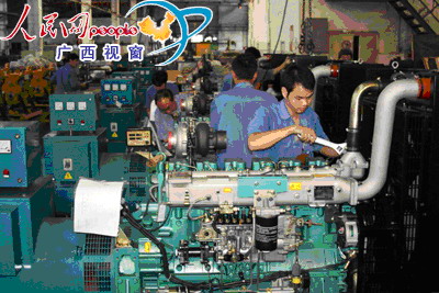 玉柴集团工人加班加点生产灾区急需的发电机组。(梅昌富摄影)