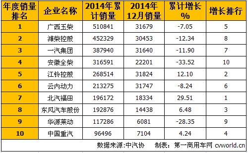 2014年车用柴油机销量排行前十(单位:台)