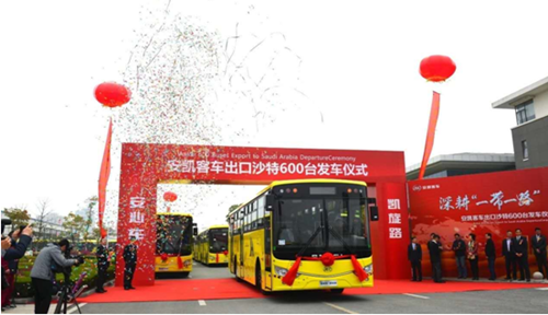 在海外市场,今年以来,玉柴发动机同样风生水起。日前举办发车仪式的安凯出口沙特600辆12米公交客车,创下2019年中国客车出口第一大单,全部配套玉柴YC6L大马力柴油发动机。厦门金龙出口沙特的200辆客车也全部搭载玉柴YC6MK发动机。目前,玉柴在沙特市场保有量已突破2.2万台,近10年来中国出口沙特的客车90%都搭载了玉柴发动机。